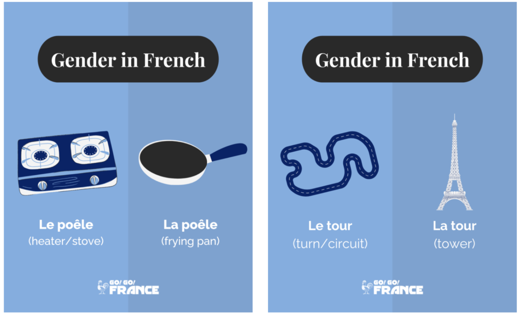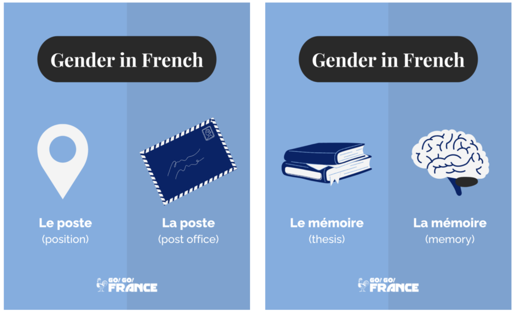 Another big difference between French and English is that French uses gender for nouns.