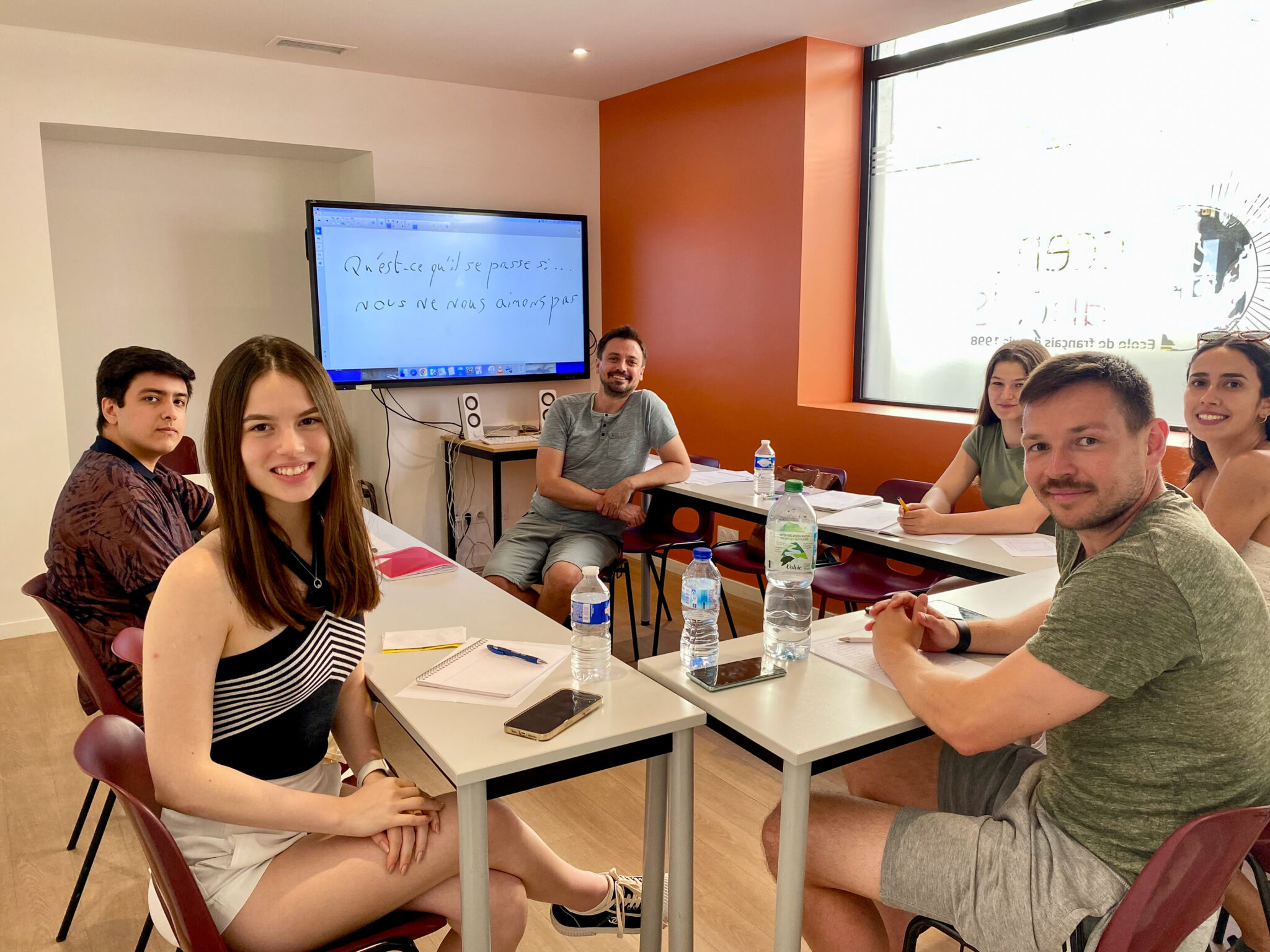 At Accent Français, classes typically have 10 students (with a maximum of 12), allowing for personalized attention and better interaction with teachers.